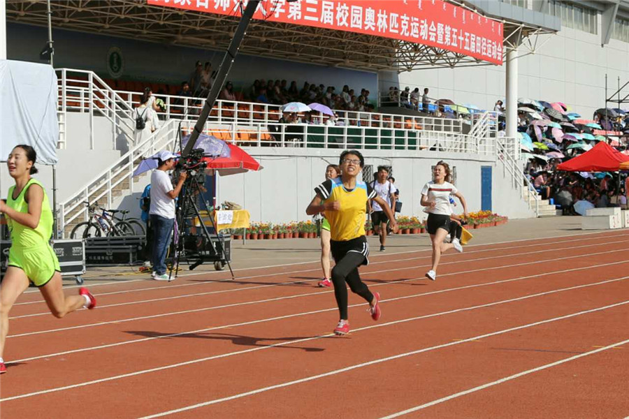 6月16日上午,在内蒙古师范大学第三届校园奥林匹克运动会暨第五十五届田径运动会上,16级会计班闪闪在女子组200米决赛中获得第二名;14级经蒙班乌日音格根在女子组3000米比赛中获得第二名;16级经汉班唐雄在男子组5000米比赛中获得第二名;15级经蒙班白玉、16级经蒙班查黑勒、16级会计班闪闪、16级经蒙班安琪尔在女子4×100米决赛中获得团体第五名。