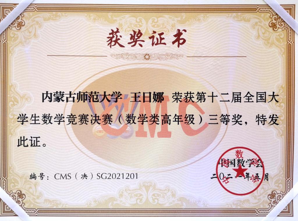 2021年5月14-16日,第十二届全国大学生数学竞赛决赛在吉林大学成功举办。我校学子首次入围全国总决赛,取得了可喜的成绩。经过激励角逐,由数学科学学院耿俊老师指导的2018级王日娜同学获得了数学类高年级组全国三等奖、韩国色情直播