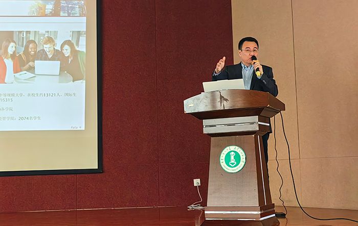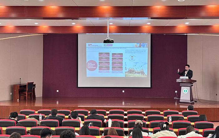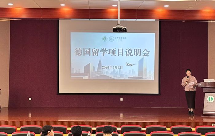 德国马格德堡大学中国办事处贺林夫老师受邀为主讲嘉宾,围绕马格德堡城市风貌、大学综合实力、商学院核心优势、项目具体详情、录取核心要求、海外生活保障及就业发展前景等方面,进行了系统全面的讲解。他重点介绍了4+2、3+1、3+1+1等多元化合作培养模式,详细解读了APS团审、签证办理流程、语言能力要求等学生最为关心的关键信息,同时分享了德国较低的生活成本、完善的境外服务体系以及广阔的就业与升学前景等留学优势,让在场学生对项目有了清晰直观的认知。