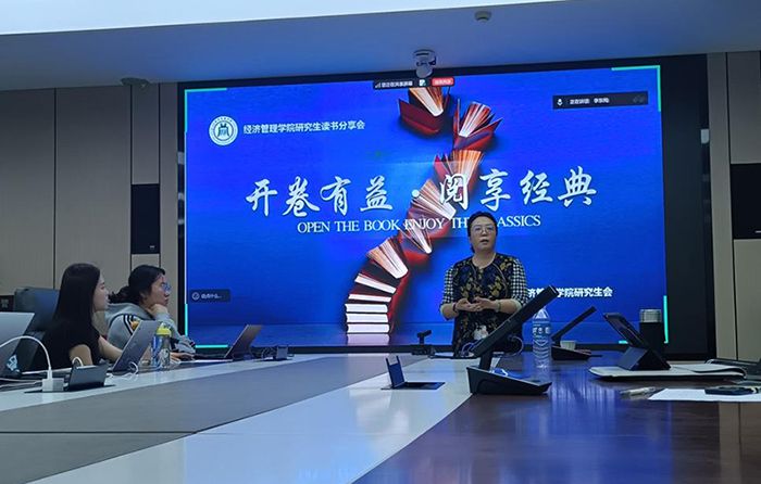 分享会伊始,学院副院长胡伟华老师结合自身求学经历,重点强调研究生尤其是理论经济学研究生,读书对科研工作具有不可替代的重要意义。她指出,经典阅读能涵养青年精神品格、积累学识、塑造思想,为青年认识社会、规划人生提供支撑,助力其明晰方向、锤炼心性。