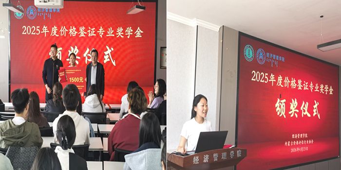 第二届价格鉴证师奖学金颁发仪式在学院楼501举行,由实习教育中心主任胡格吉乐图主持。学院党委书记智如水,中国价格协会评估分会会长、北京国宏信集团总经理兼内蒙古价格协会会长云金平出席,获奖学生及师生代表参加。