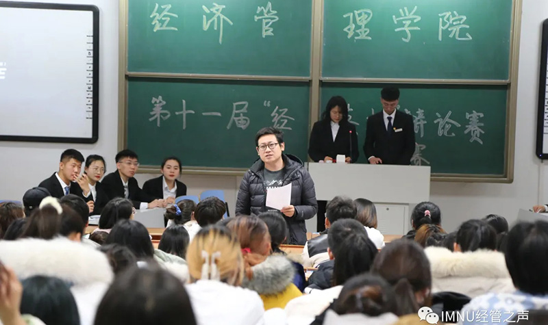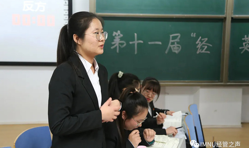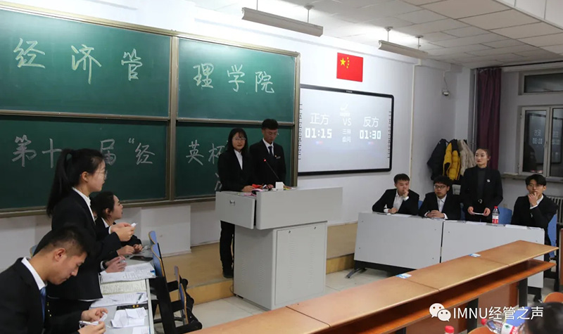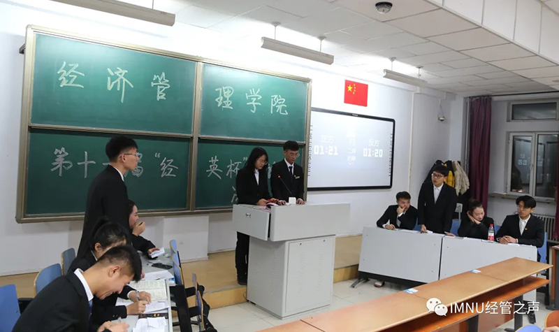 第十一届“经英杯”辩论赛决赛在行知楼323教室顺利举行。决赛特邀马运泽老师、袁雨学姐、张婉莹学姐作为评委出席本次比赛。本次辩论赛由辩论社胡小月同学主持。参赛班级分别是19级会计文班、19级会计理班、19级经济学汉班和19级财务管理班。辩论赛上,正方观点为“善行是真善”,而反方观点为“善心是真善”,双方就这一辩题展开激烈论战。